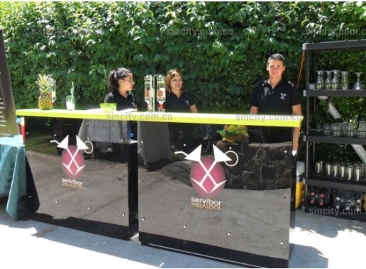 Llevamos: Barman, Ayudantes de Bar, Licores, Jugos, Bebidas, hielo, Copas y Vasos. Variada Carta de Tragos con y sin alcohol, Servicio tipo Pub (Tragos y Cócteles en vasos adecuados y adornados),Bar Abierto ¡¡¡hasta por 5 horas !!!, 100% profesionales,